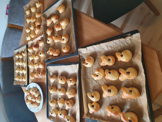 Im Anschluss wartete eine köstliche Überraschung: Der Vorstand des Elternvereins hat mit viel Einsatz 250 Brioche-Haserl gebacken und um freiwillige Spenden gebeten. Außerdem wurden viele weitere Köstlichkeiten angeboten – von feinen Mürbteig-Keksen über saftigen Gugelhupf bis hin zu Brioche-Zöpfen und Kränzen mit Ei.